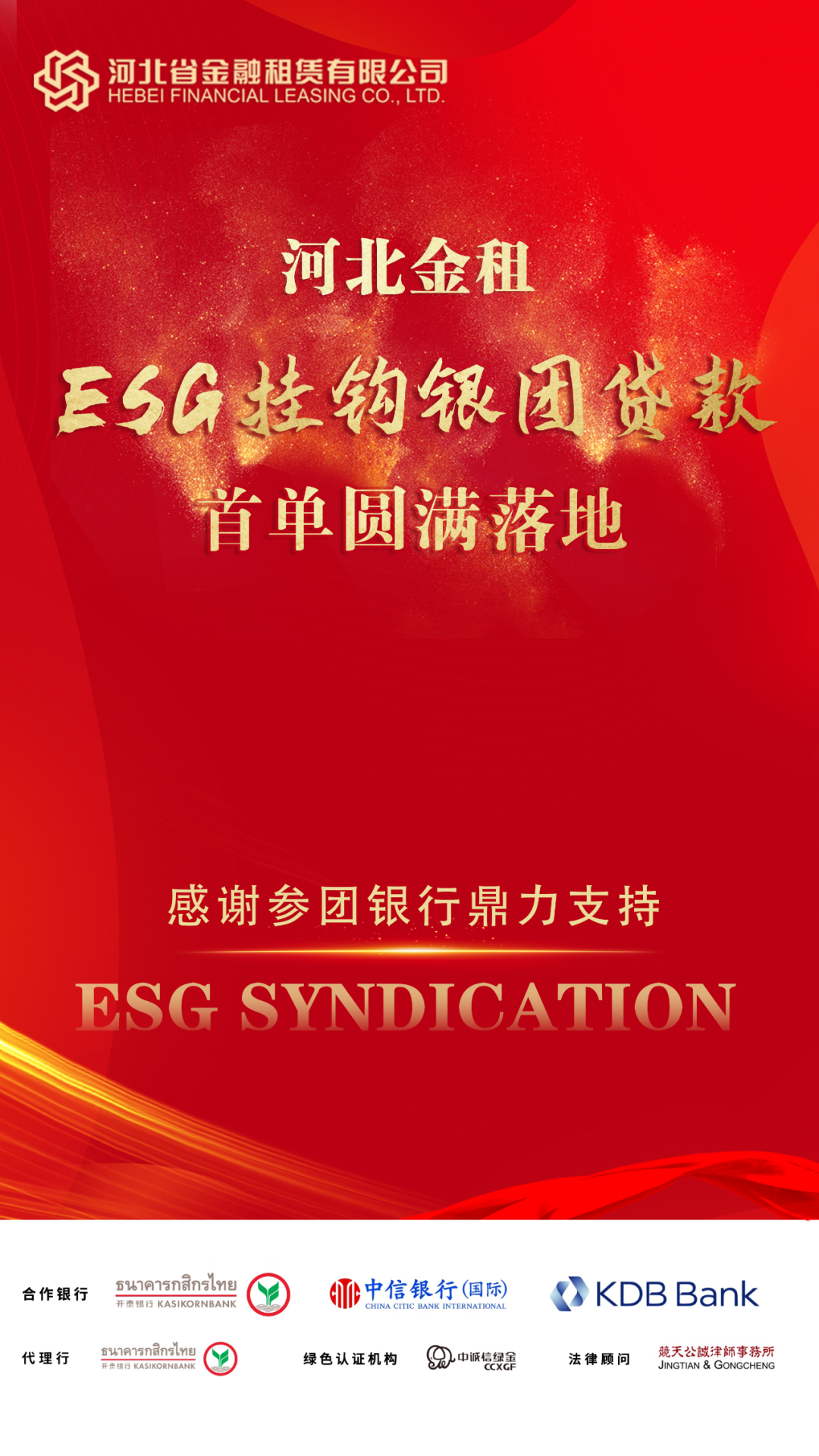 近期,河北省金融租賃有限公司(以下簡稱“河北金租”)成功募集首筆可持續(xù)發(fā)展(ESG)掛鉤銀團貸款,這是金租行業(yè)開展的首單境內ESG掛鉤銀團貸款業(yè)務,也是河北金租貫徹監(jiān)管政策要求,履行企業(yè)社會責任,積極探索綠色租賃業(yè)務的又一重要舉措。