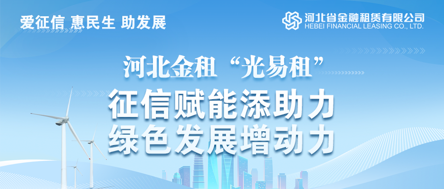 在第十七個“6·14信用記錄關愛日”到來之際,中國人民銀行河北省分行全面開展“愛征信 惠民生 助發展”專題宣傳活動,向社會公眾推介征信高質量發展助推實體經濟的經驗做法,促進社會共建信用體系。河北省金融租賃有限公司(以下簡稱“河北金租”)的特色租賃產品“光易租”入選此次宣傳典型案例,其踐行征信文化、支持綠色金融的做法獲得了監管部門和社會各界的好評。